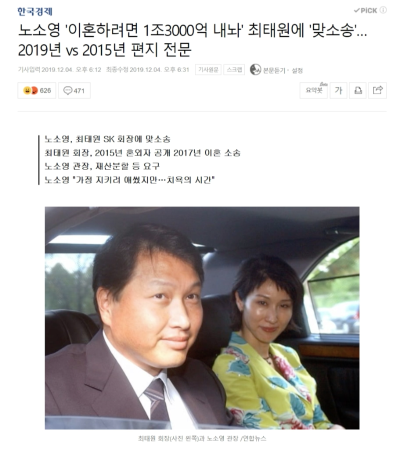 7. 노소영 '이혼하려면 1조3000억 내놔' 최태원에 '맞소송'…2019년 vs 2015년 편지 전문