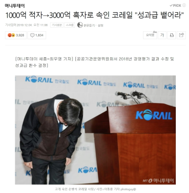 6. 1000억 적자 → 3000억 흑자로 속인 코레일 "성과급 뱉어라"