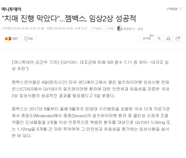 8. "치매 진행 막았다." ... 젬백스, 임상2상 성공적