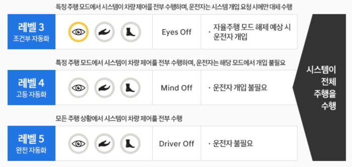 레벨3는 자율차 책임하에 운행이되고, 자리에는 앉아 있어야한답니다.