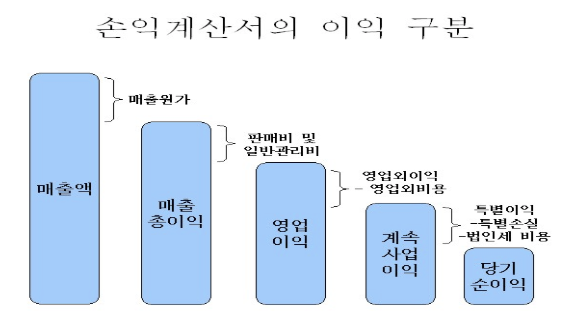 = 매출액 - 매출원가 - 판매비 - 관리비 등 - 영업 외 수익과 비용 - 특별 이익과 손실 - 법인세