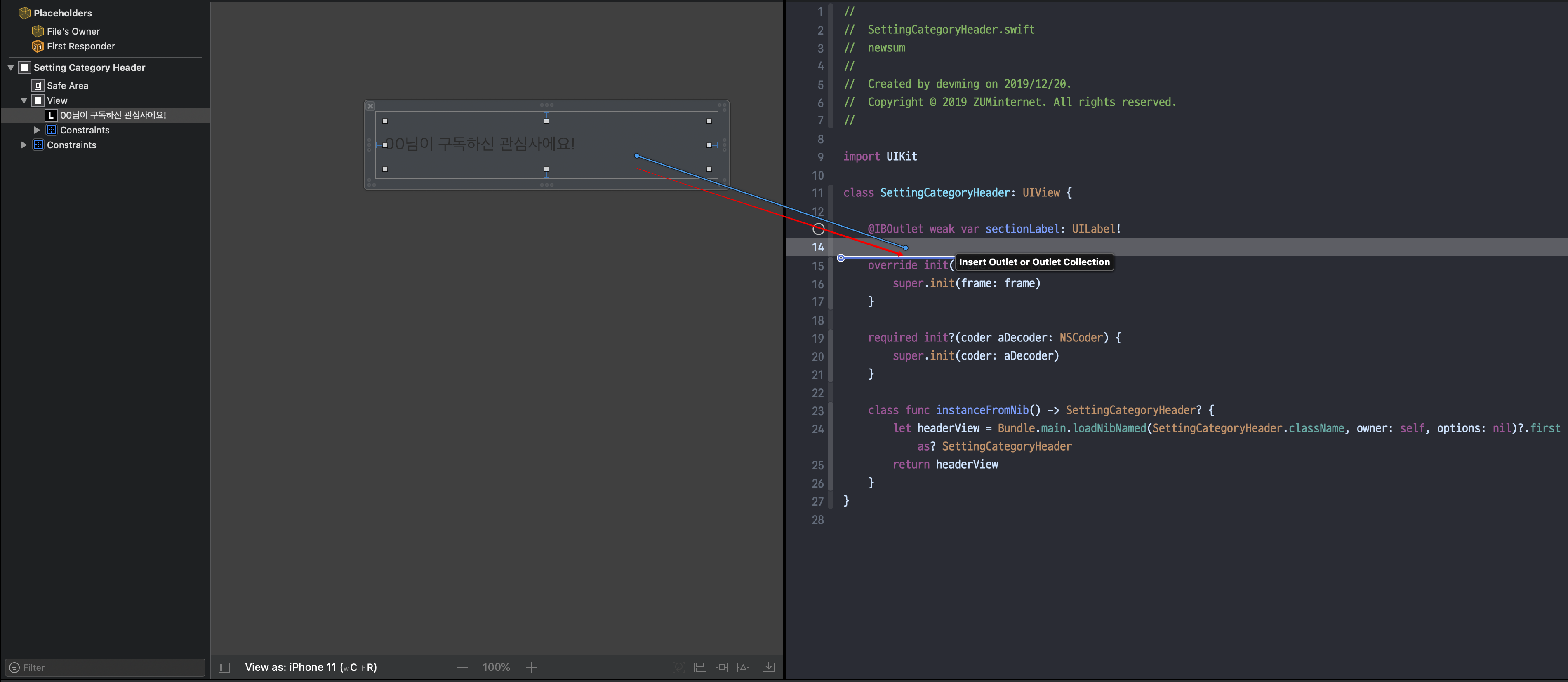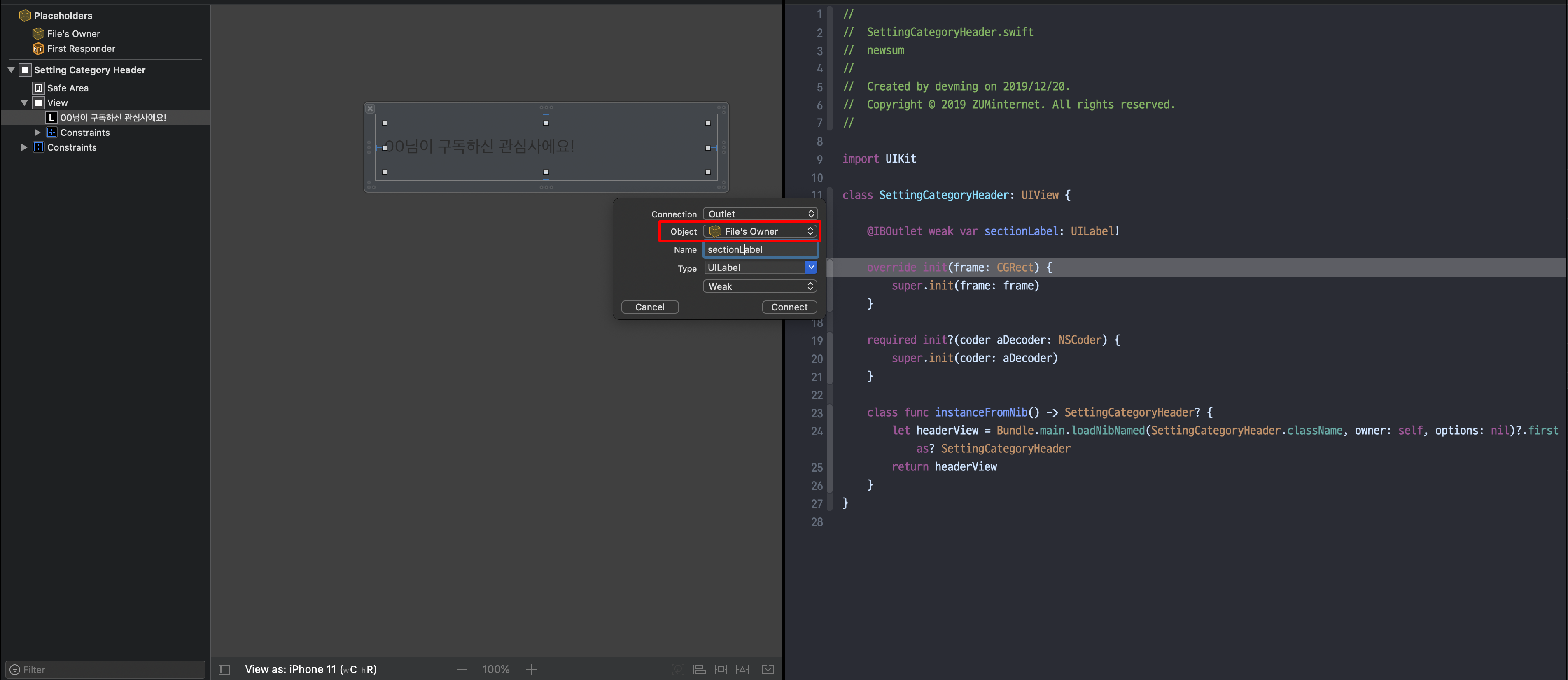 File's Owner가 sectionLabel이라는 변수를 가지고 있는 객체가 됩니다.