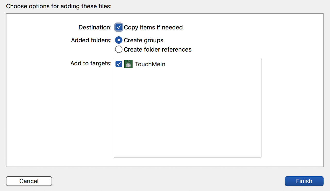 메시지가 표시되면 Copy items if needed와 TouchMeIn 대상이 모두 선택되어 있는지 확인하십시오.